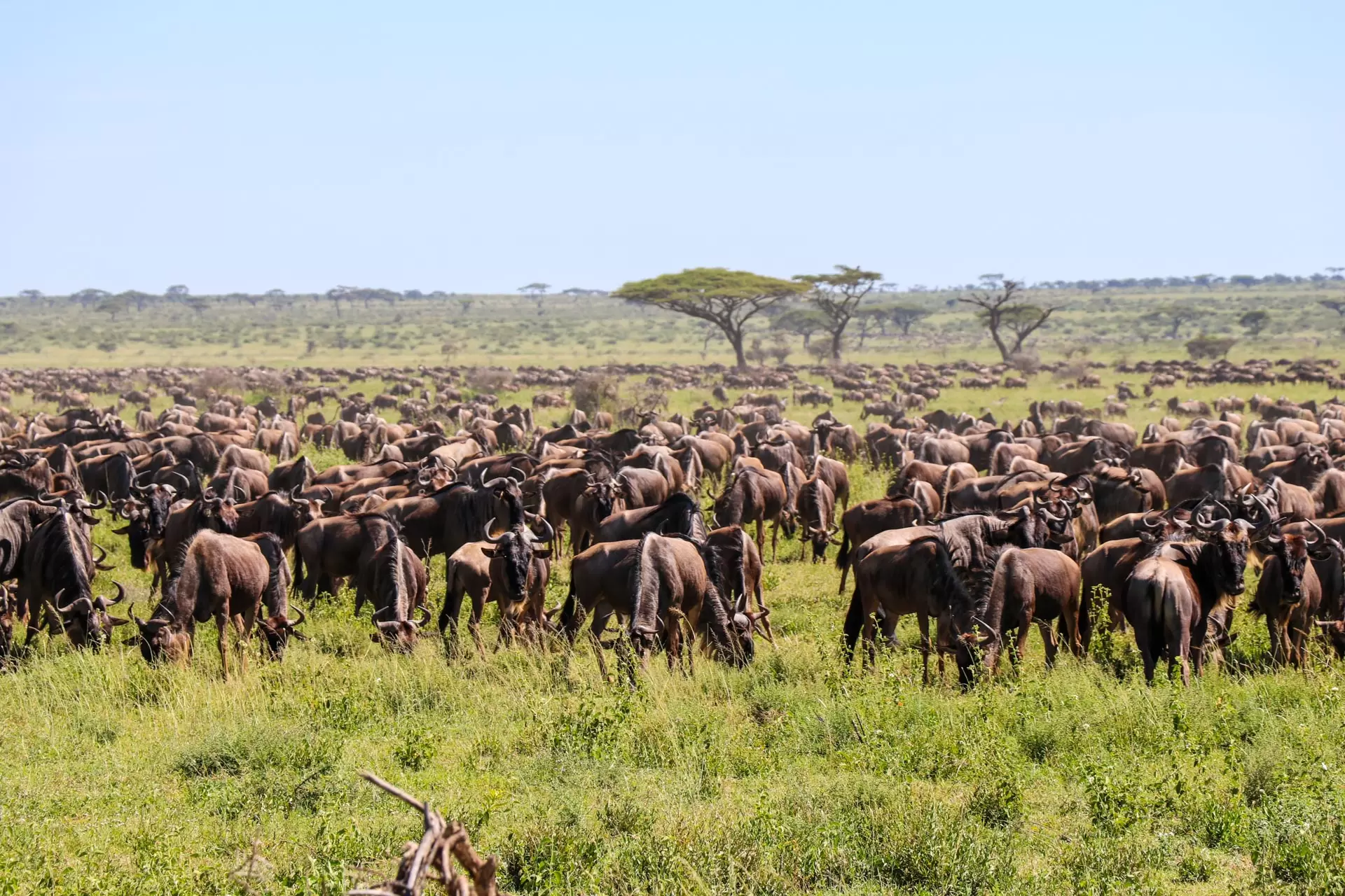 By October, the herds commence their southward migration once again, passing through western Loliondo and the Lobo area of the Serengeti National Park. They return to the rejuvenated greenery that follows the rains on the short-grass plains of the southern Serengeti.